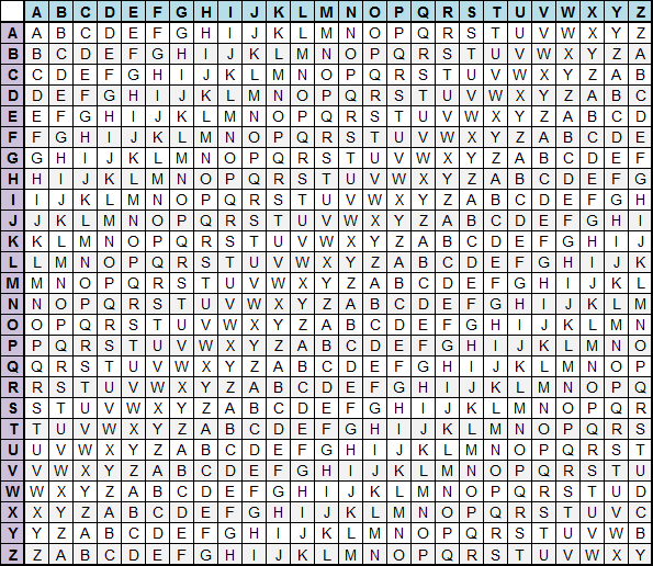 Criada no século XVI, foi chamada de “le chiffre indéchiffrable” por séculos. Ao contrário da Cifra de César, ela utiliza uma palavra-chave para variar o deslocamento a cada letra.